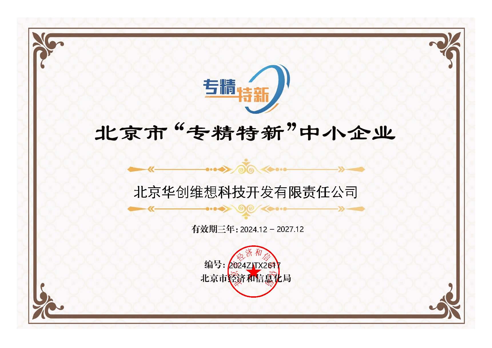 喜報(bào)—華創(chuàng)維想獲得北京市“專精特新”中小企業(yè)證書